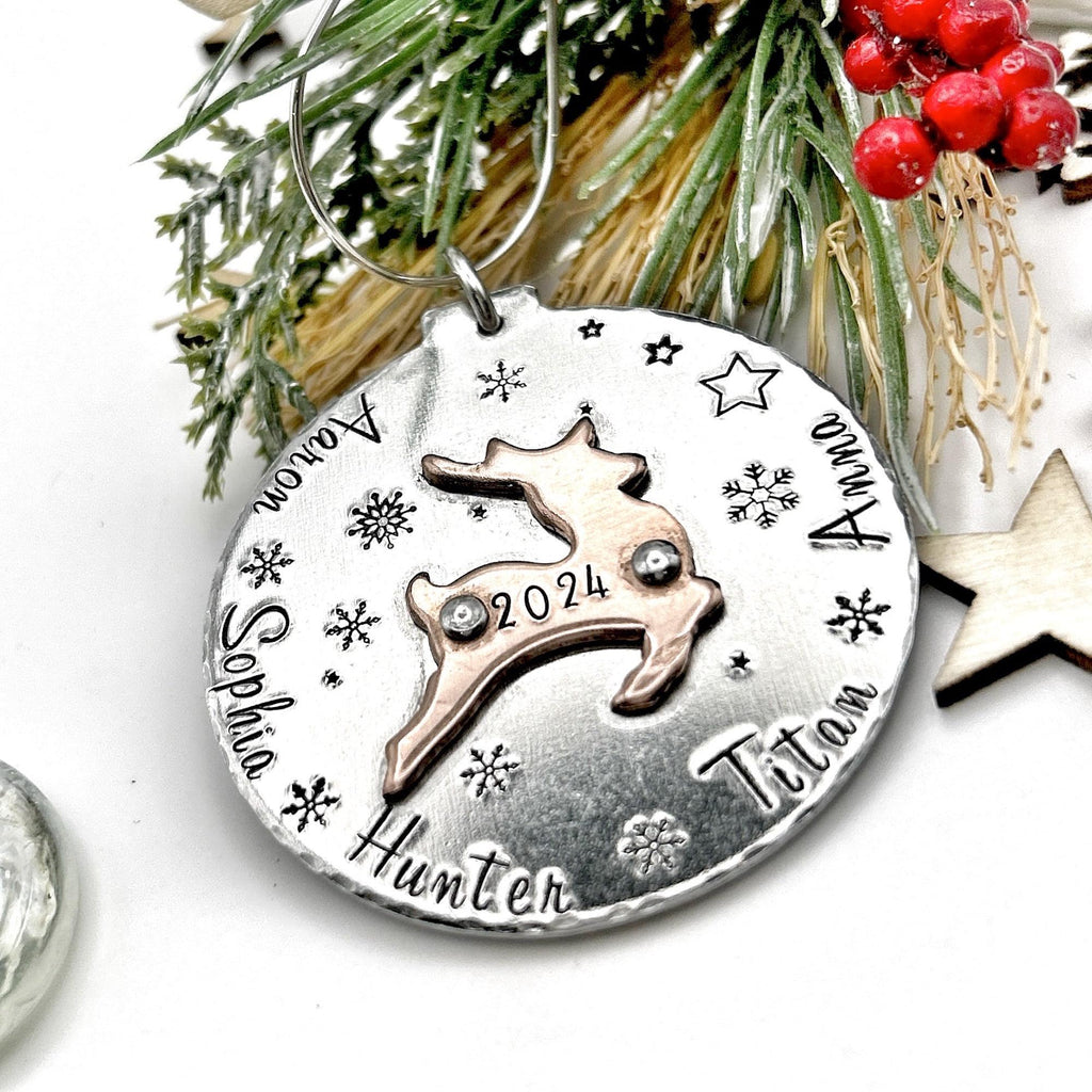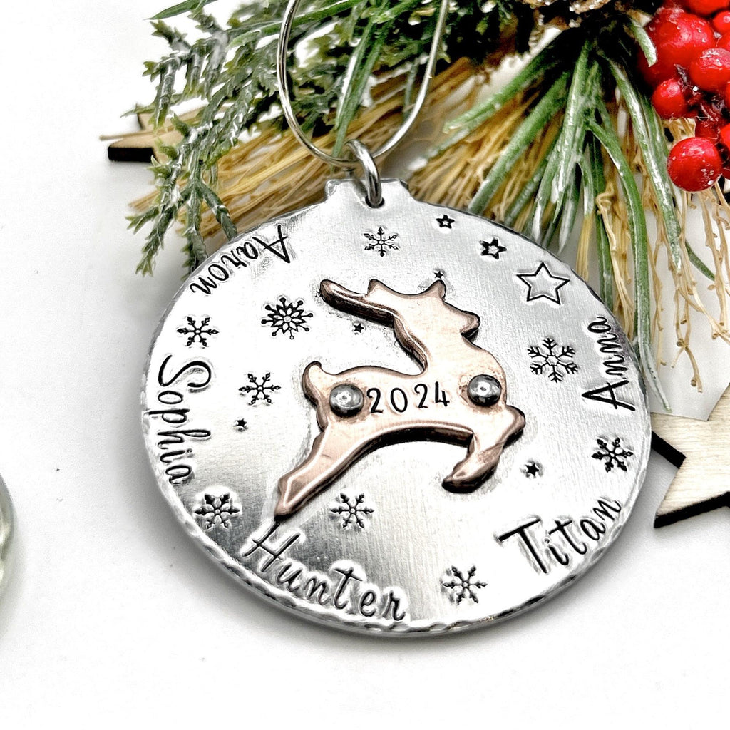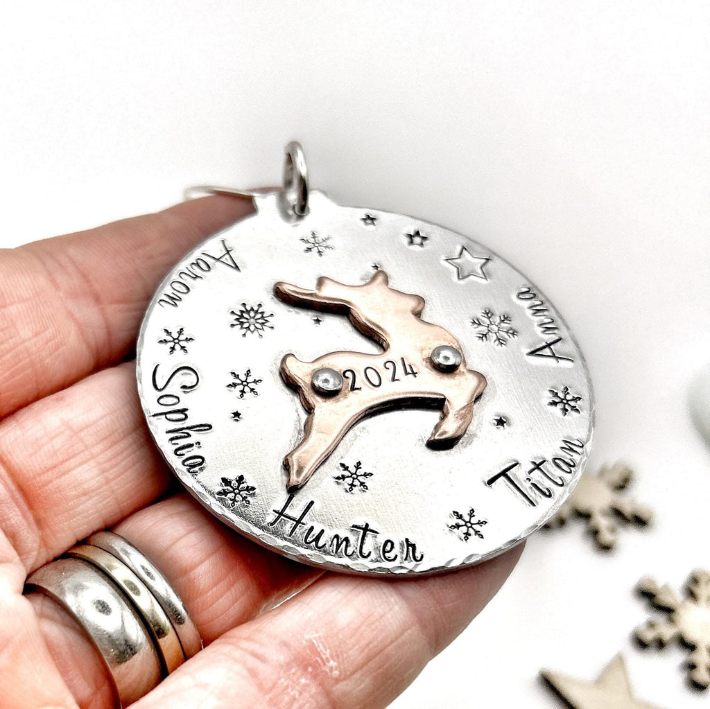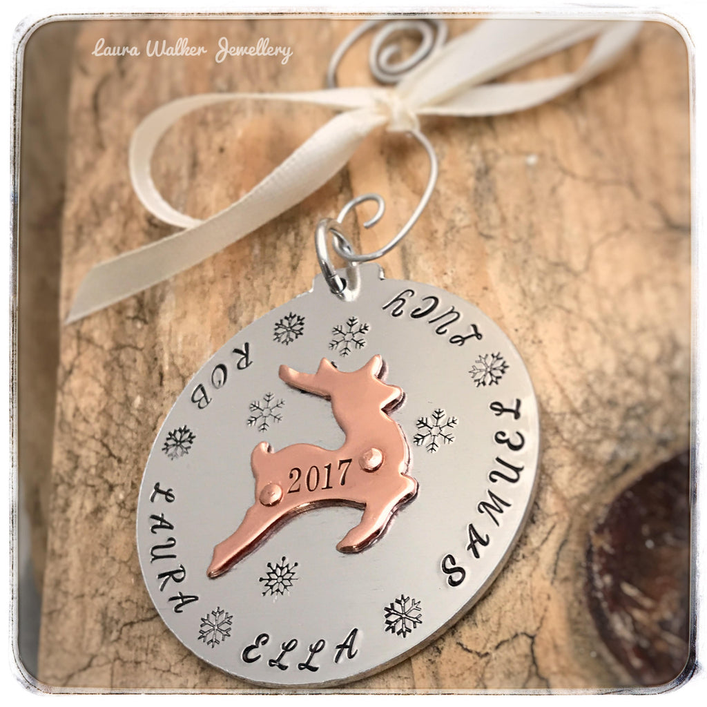 Cette jolie boule de noël a été gravée à la main. Je peux personnaliser avec les noms de la famille.