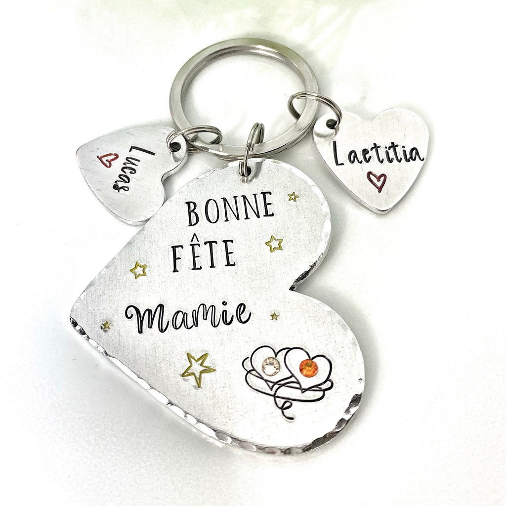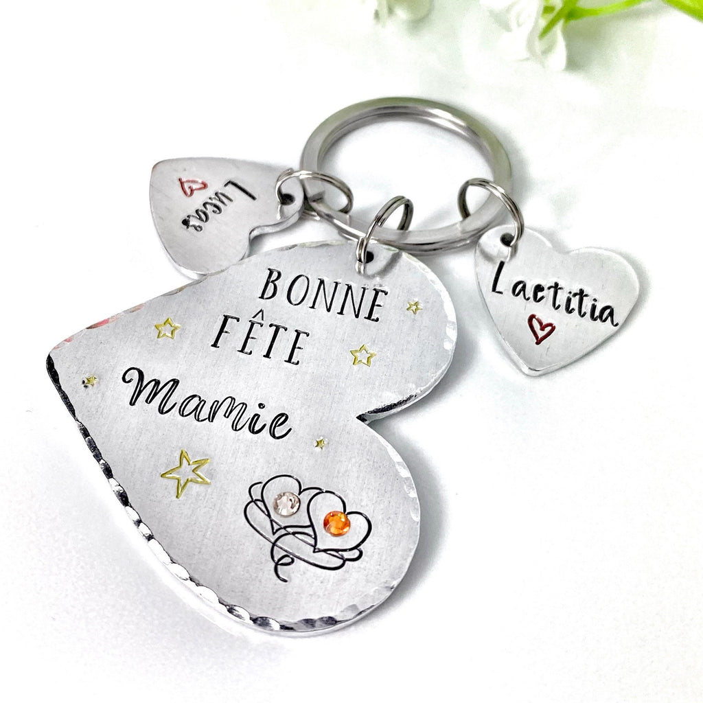 Ce super joli porte-clé en aluminium a été gravé à la main. Un cadeau original pour mamie.