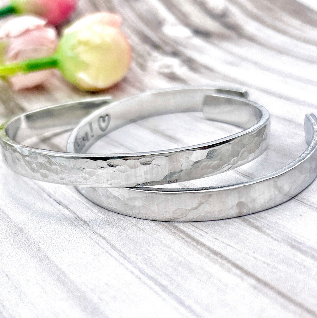 Ce joli bracelet en aluminium a été gravé à la main. Un cadeau original pour un nounou. Indiquer le nom du nounou dans la cadre de personnalisation.