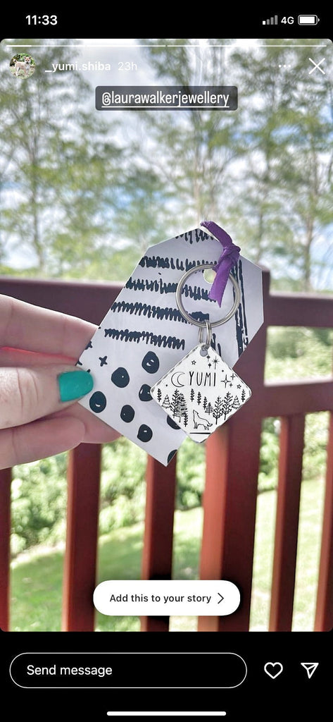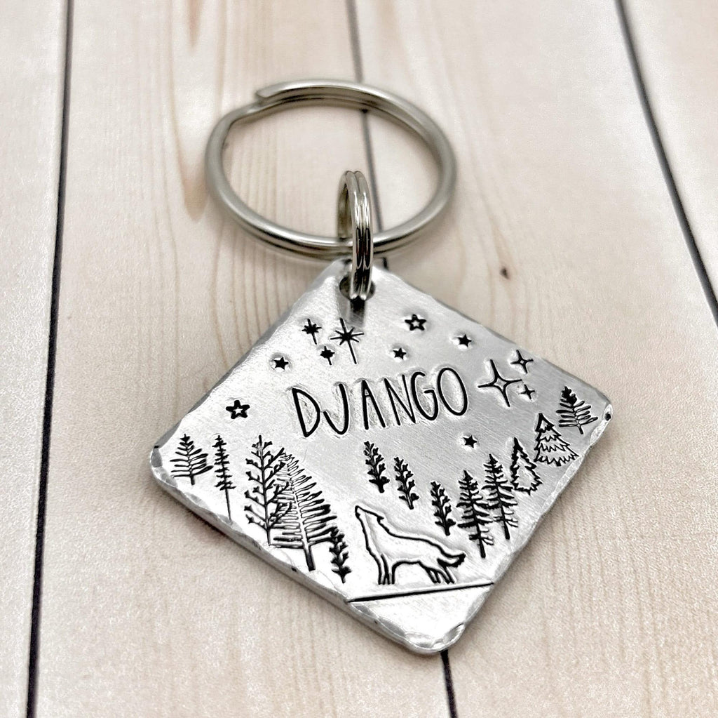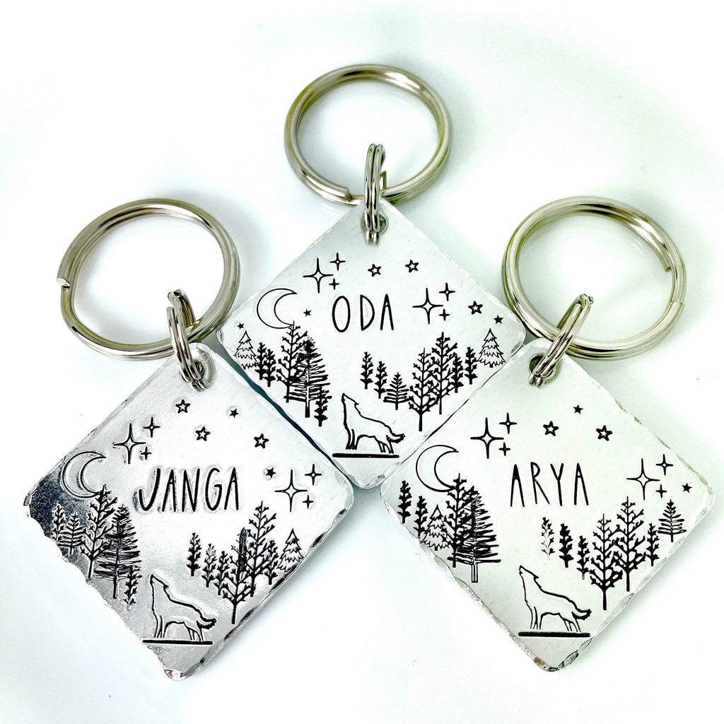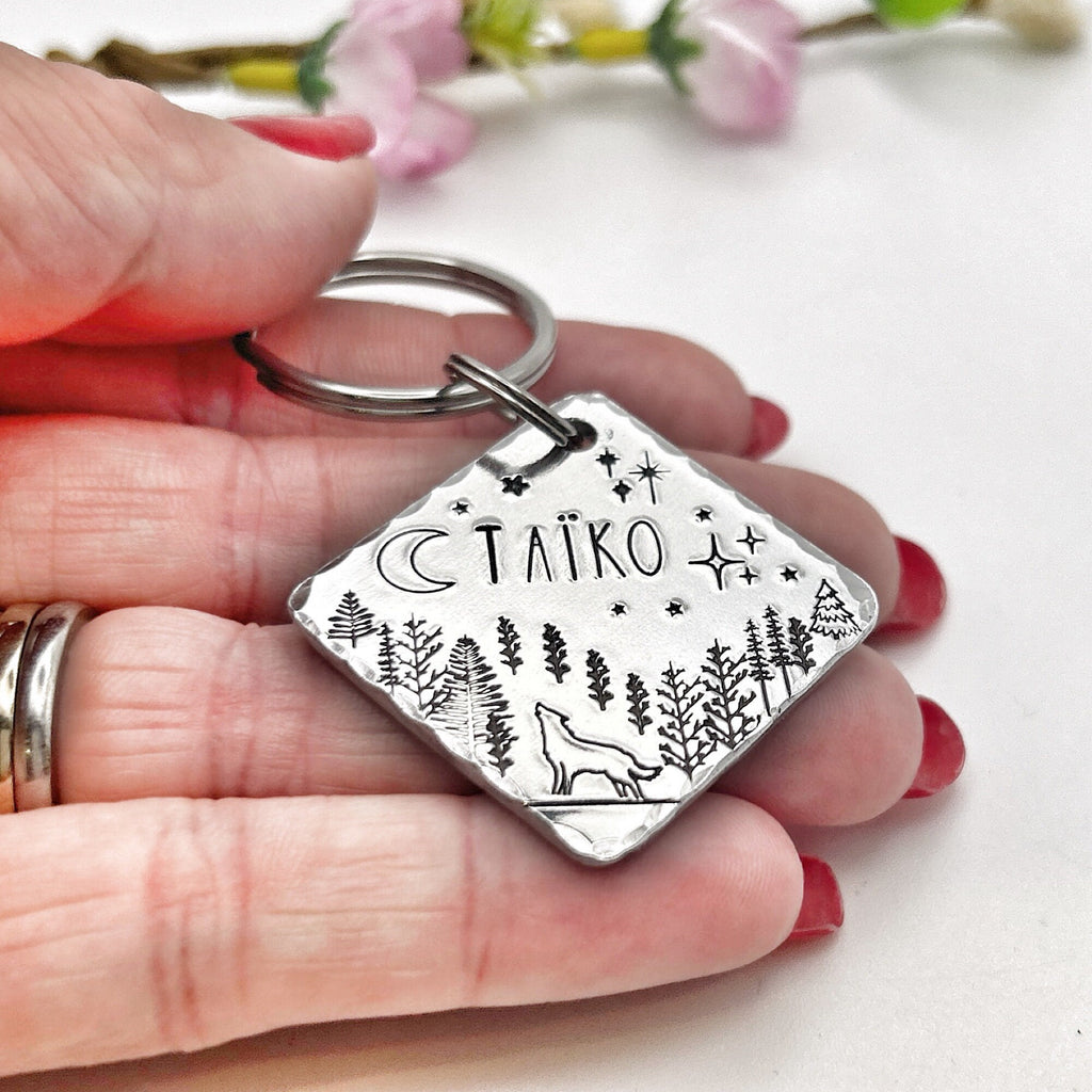 Médaillon d'identification, Médaille avec Loup, Lune et Arbres, Personnalisée