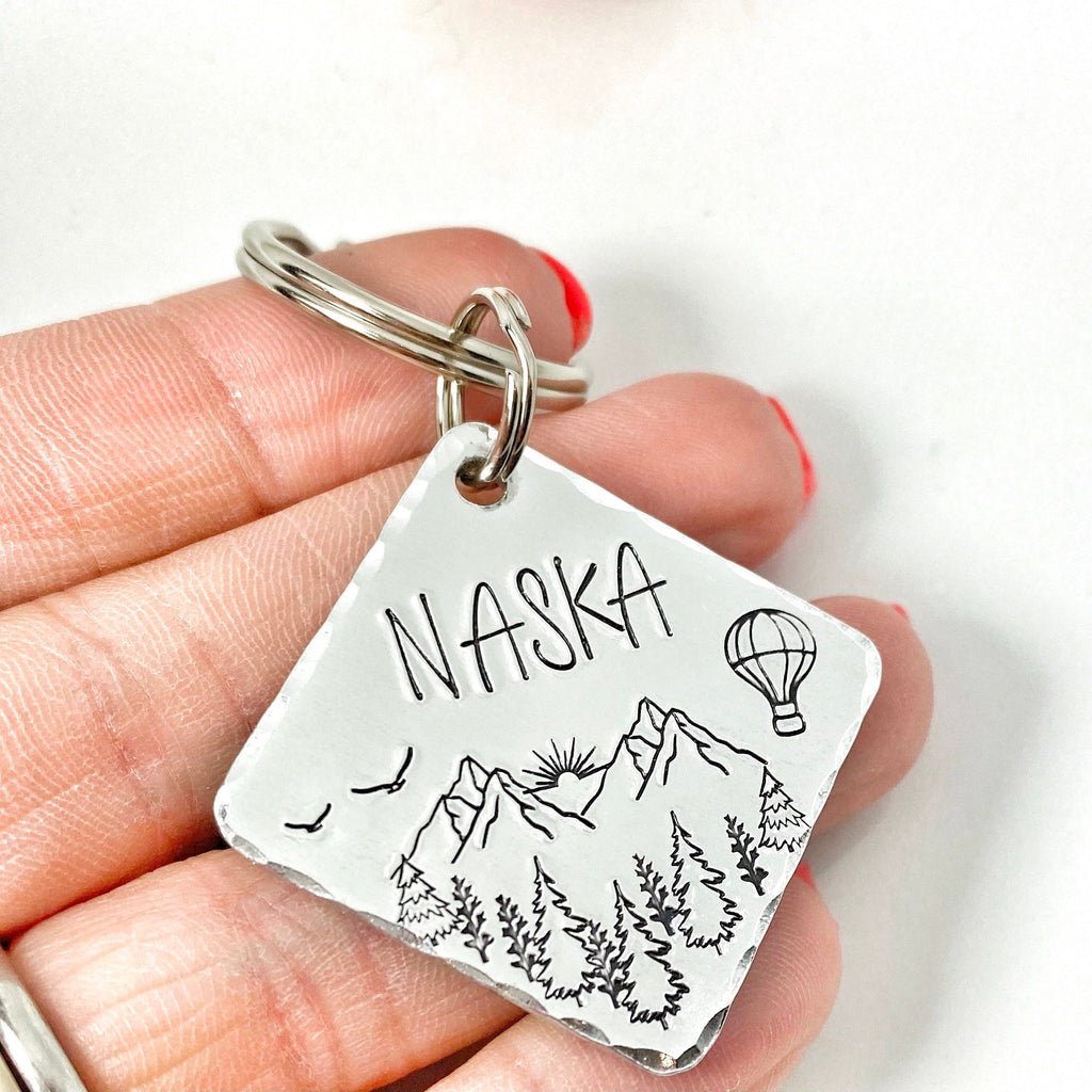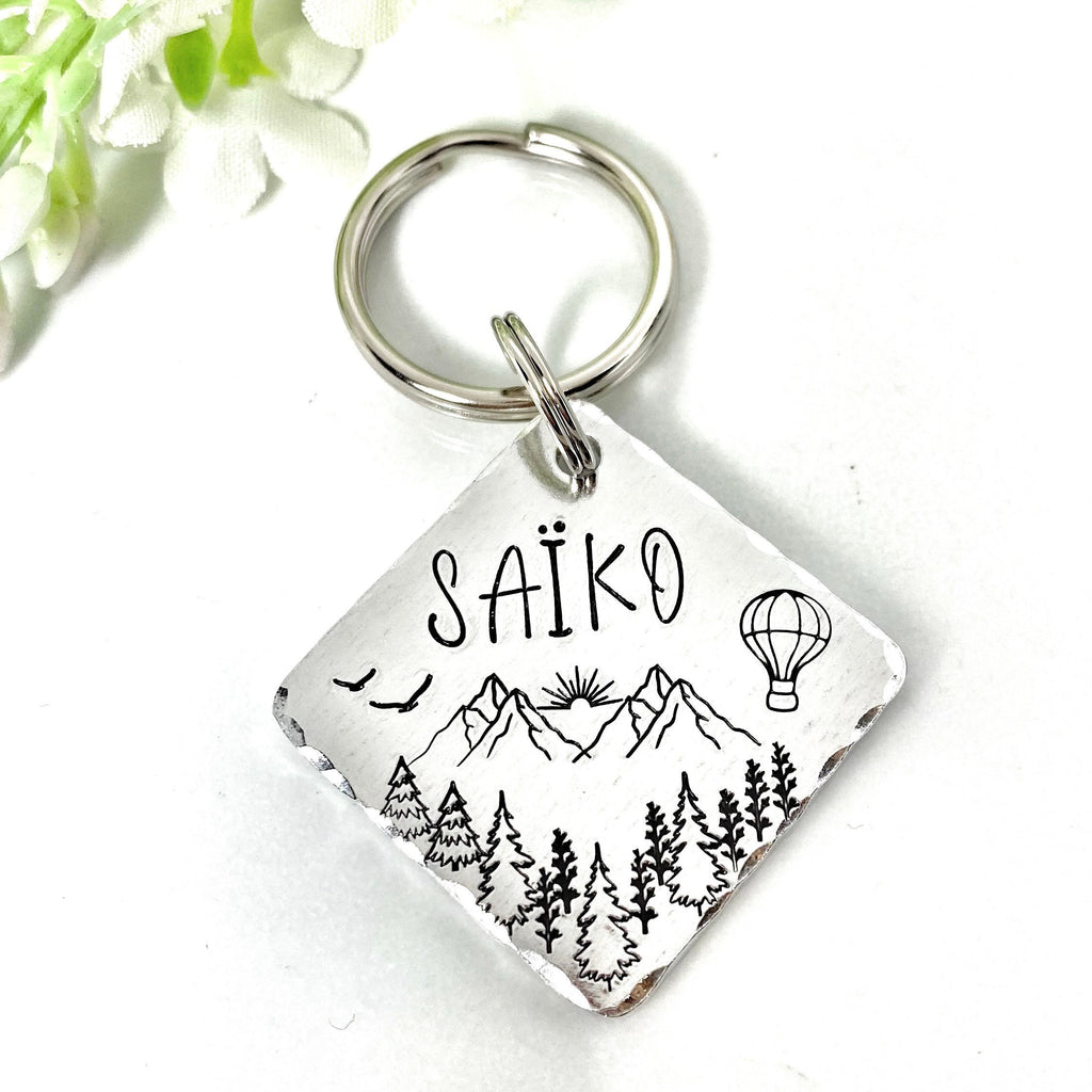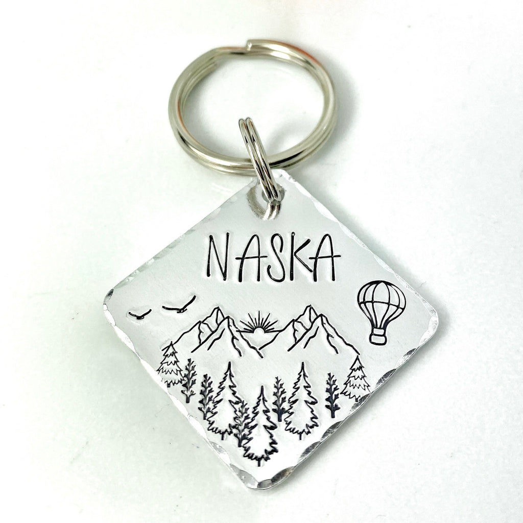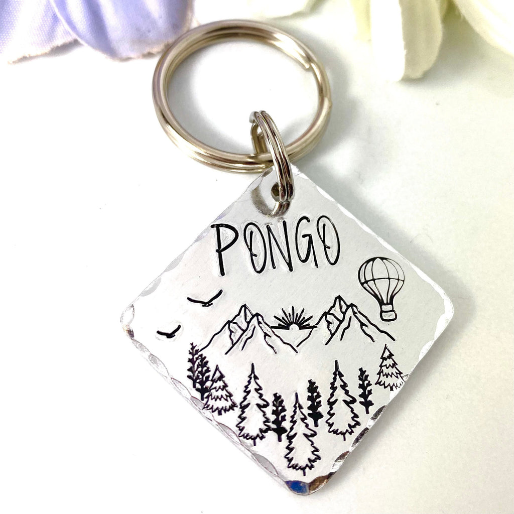 Médaillon d'identité Chien, Médaille Chien Montagnes et Forêt, Gravé avec Nom et Numéro