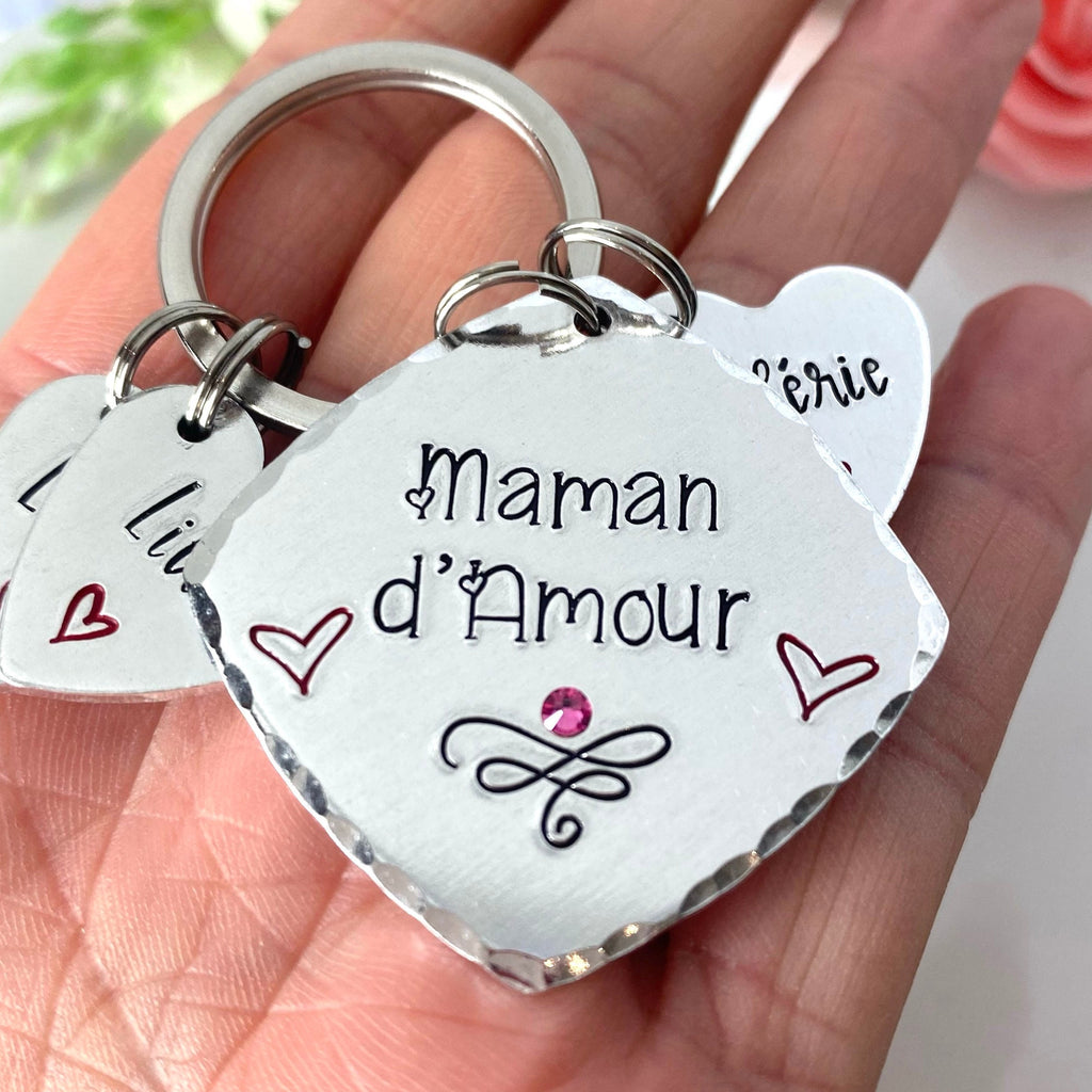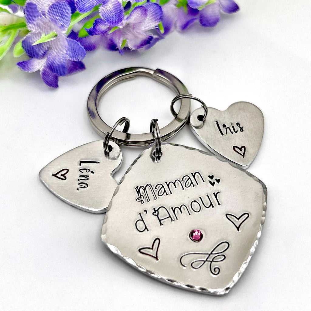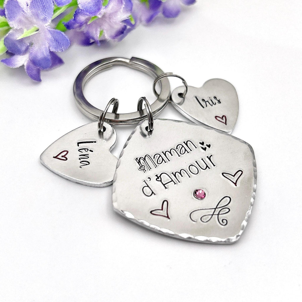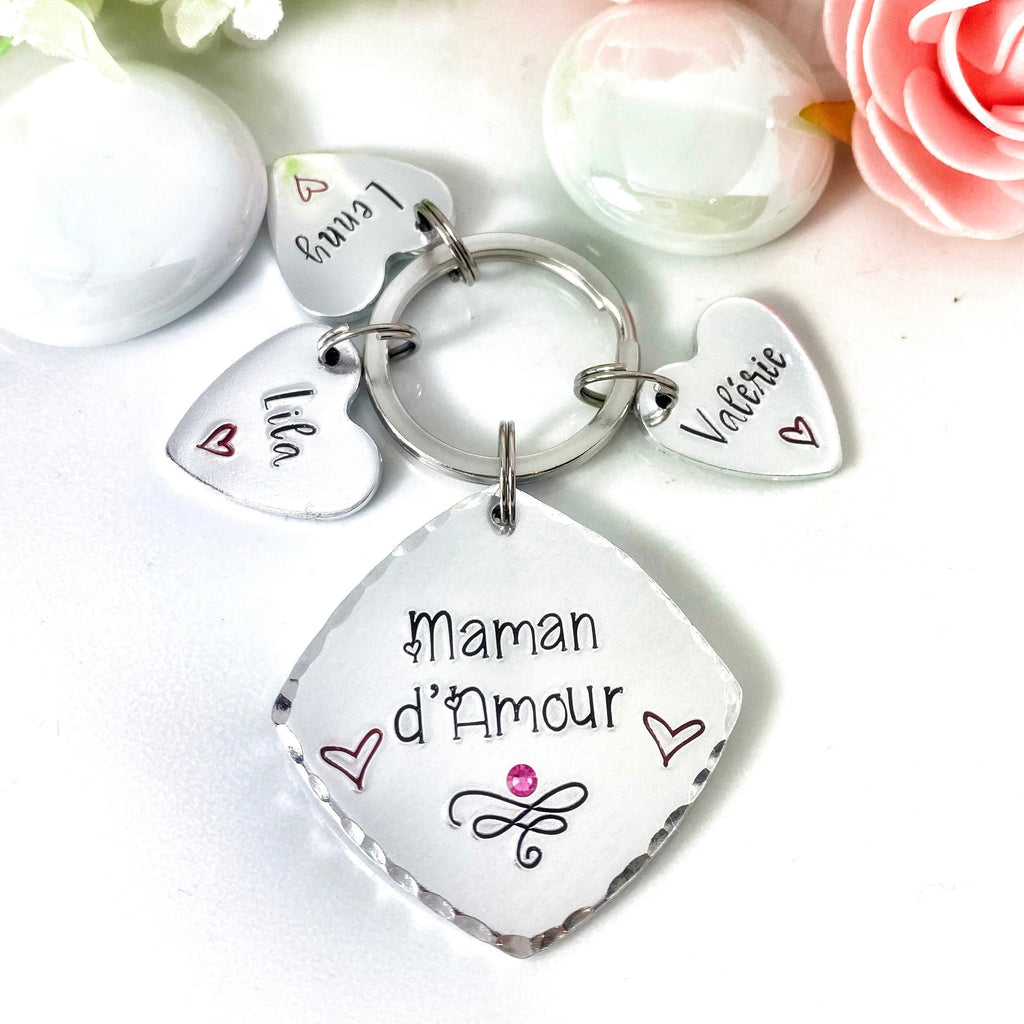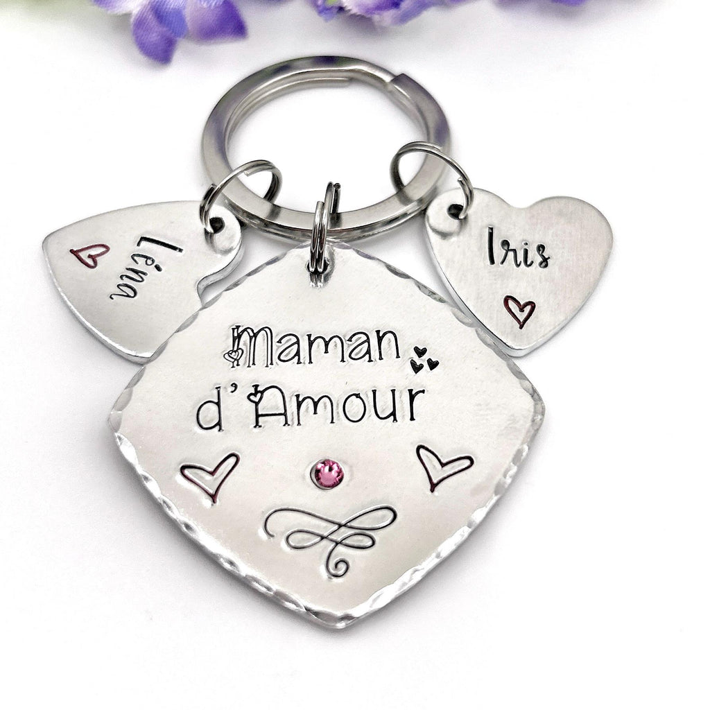 Porte Clé Maman, Maman d'Amour, Cadeau Prénoms Enfants Maman, Cadeau Maman Fête des Mères