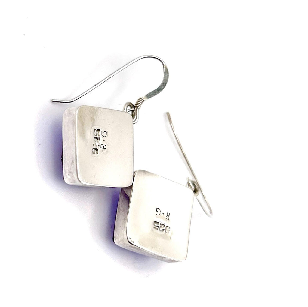 The earrings are entirely encased in solid 925 sterling silver and finished with sterling silver fish hooks.