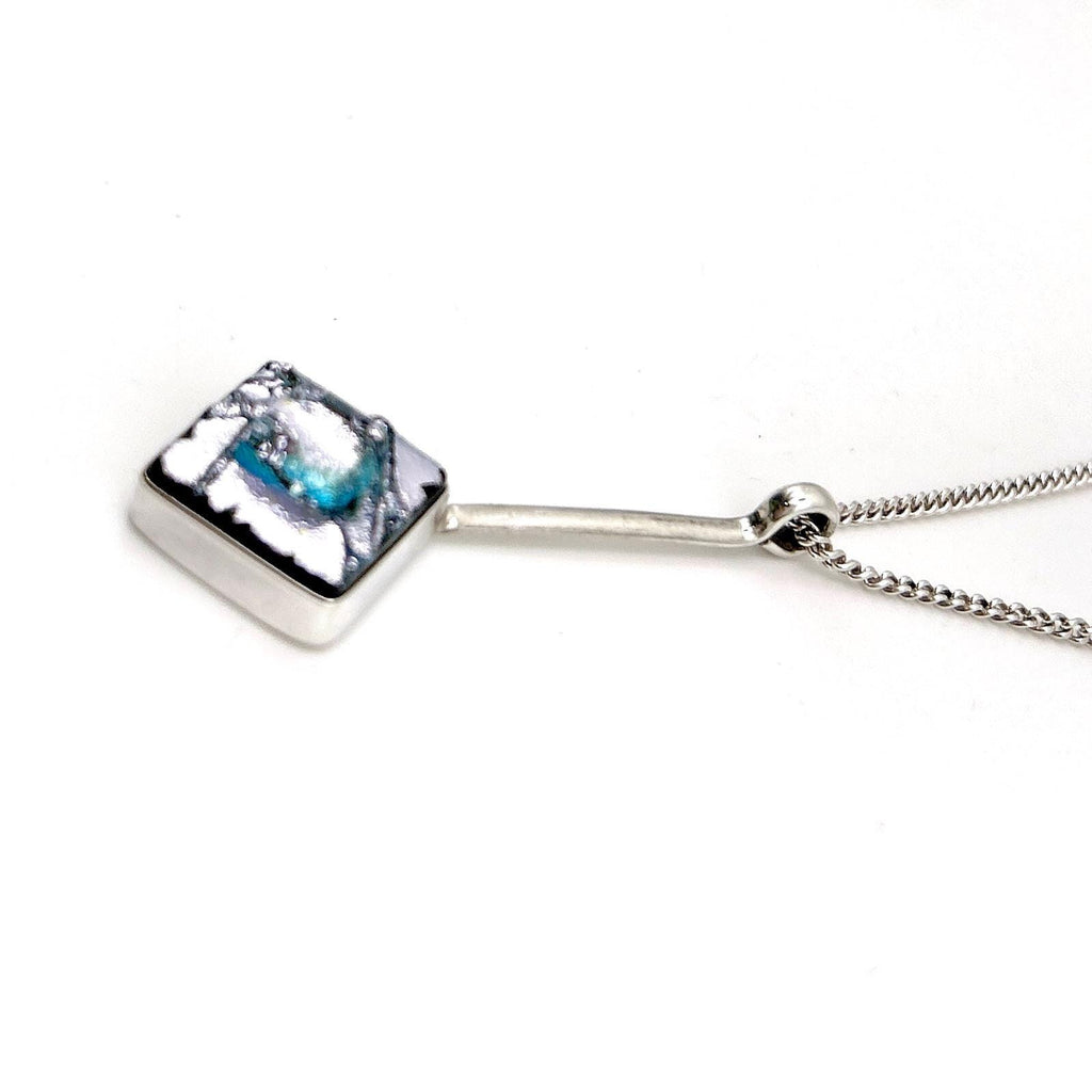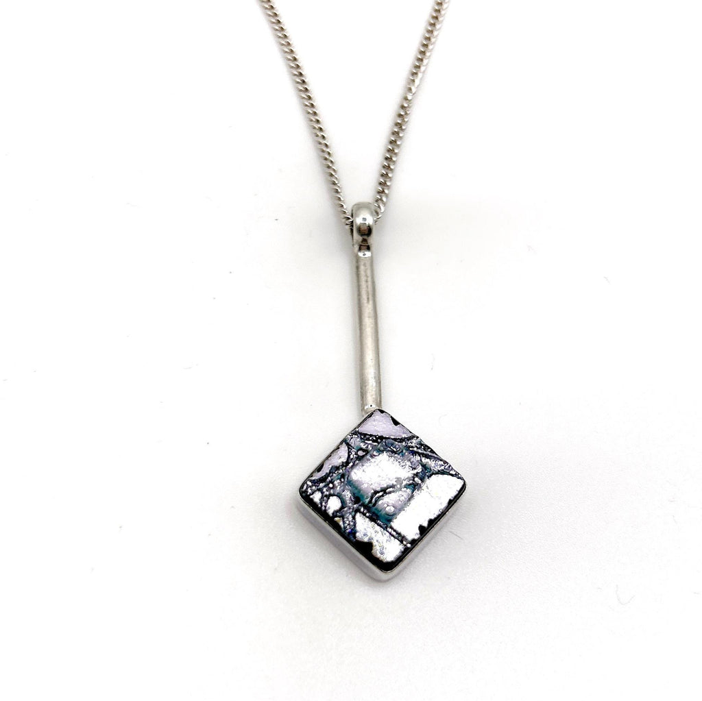 Dichroic Glass Pendant Necklace in Sterling Silver – Square Fused Glass Jewelry – Handmade Modern Necklace