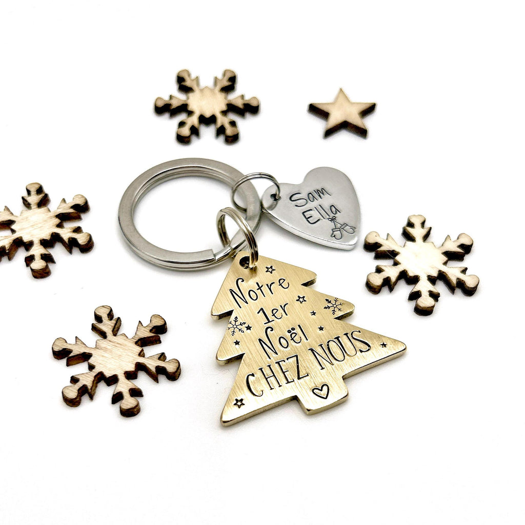 Cadeau de Crémaillère, Porte-clés Personnalisé – Notre Premier Noël Chez Nous
