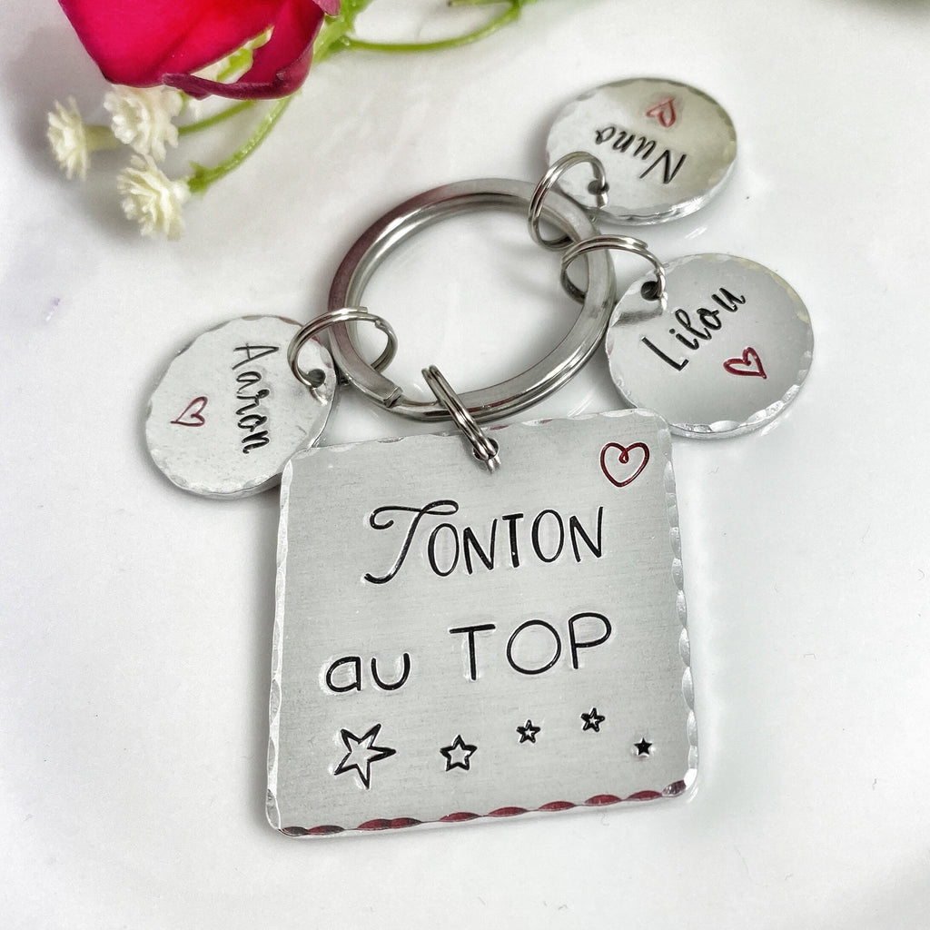 ** Hand Stamped Tonton Keychain, Personalised Message French Keyring, Cadeau Tonton, Super Tonton **