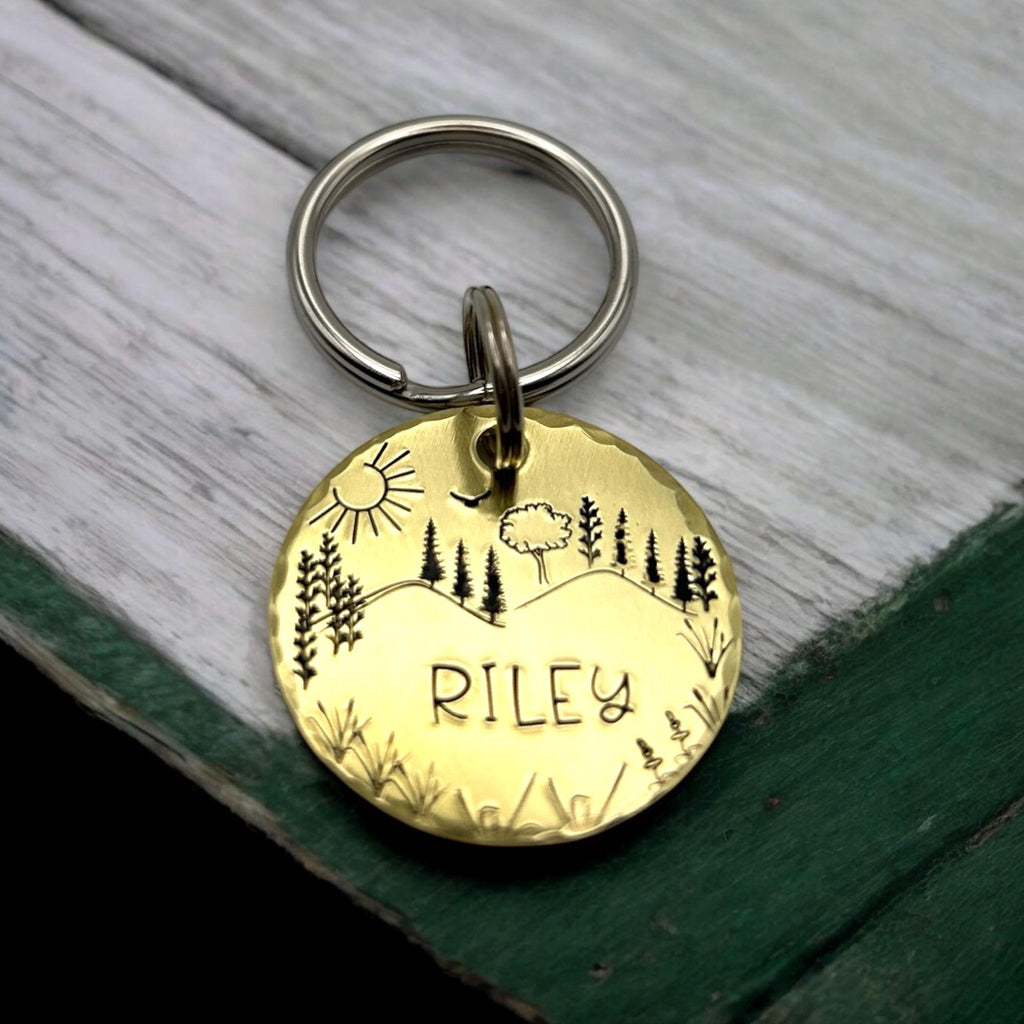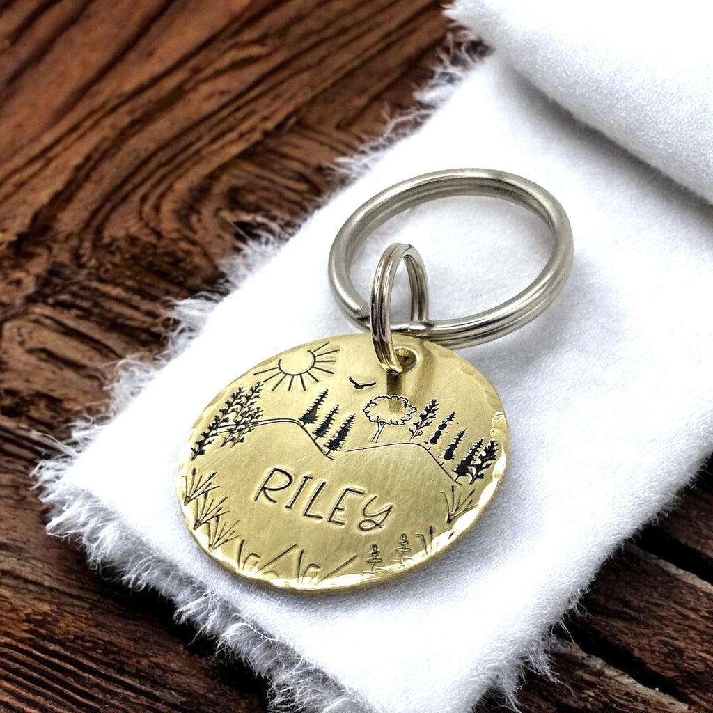 Brass Pet ID Tag - Custom Dog Tags - Metal Dog Medal - Trees and Nature